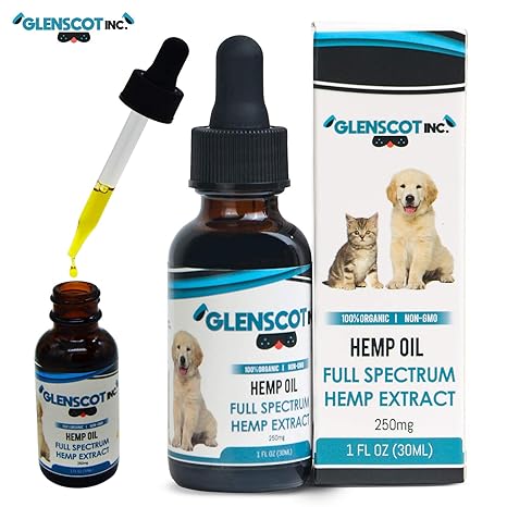 Glenscot Hemp Oil Dogs Cats 250mg Anxiety Allergy Arthritis Relief Hip Joint Health 100 Organic Pet Hemp Oil