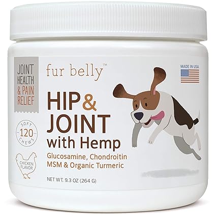 Fur Belly Glucosamine For Dogs Hip Joint Supplement For Dogs With Chondroitin Msm Organic Hemp Oil Turmeric Omega 3 6 Promotes Joint Support