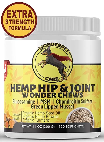 Wonderpet Care Hemp Hip Joint Supplement For Dogs Chondroitin Glucosamine Msm Hemp Oil Hemp Powder Turmeric Extra Strength Formula For Arthritis