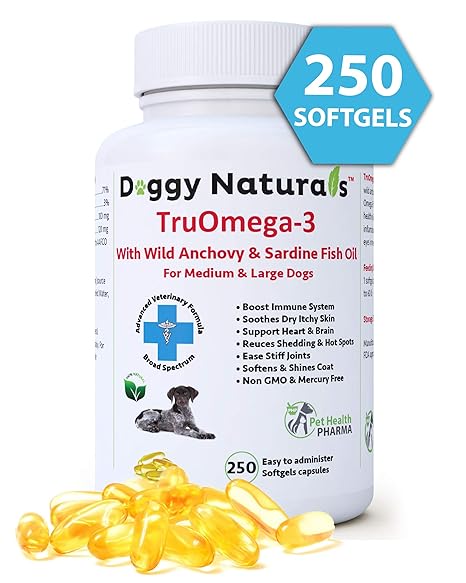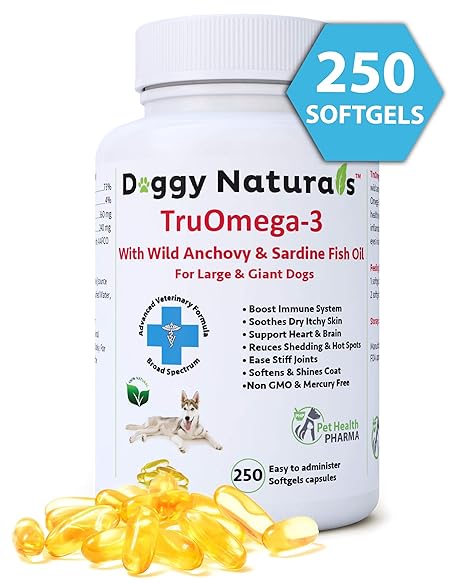 Tru Omega 3 Fish Oil For Dogs Natural 250 Softgel Pills 1000 Mg Epa Dha Dog Fish Oil Supplement For Joint Arthritis Relief Allergy Itch
