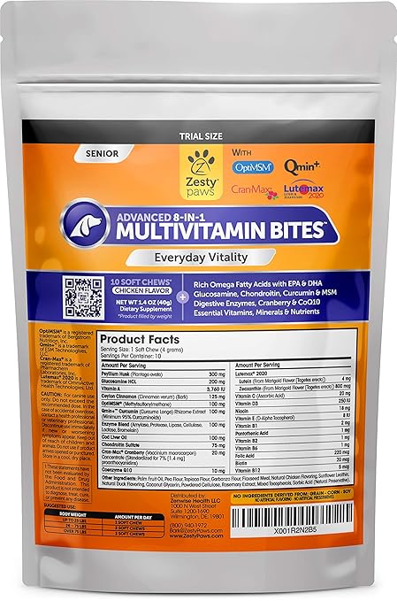 Zesty Paws Senior Advanced Multivitamin For Dogs Glucosamine Chondroitin For Hip Joint Arthritis Relief Dog Vitamins Fish Oil For Skin Coat