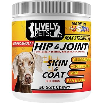 Lively Pets New Improved Max Strength Hip Joint Skin Coat Soft Chews For Dogs Glucosamine Chondroitin Msm Epa Dha