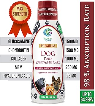 Tropical Oasis Veterinarian Developed Liquid Hip And Joint Supplement For Dogs W Glucosamine Chondroitin Msm Hyaluronic Acid And Collagen Fast