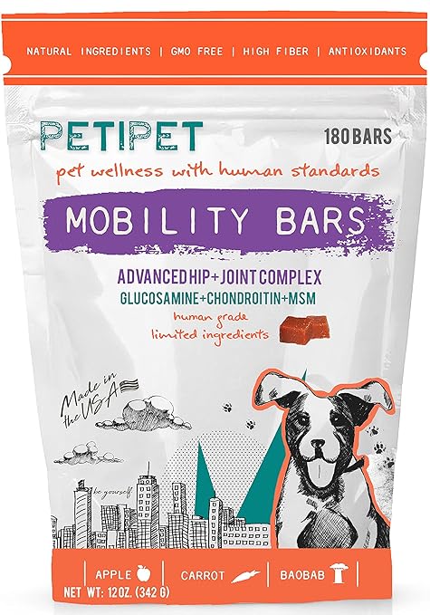 Petipet Mobility Bars Dog Treats Advanced Hip Joint Complex Formulated With Glucosamine Chondroitin Msm Human Grade Ingredients Made In