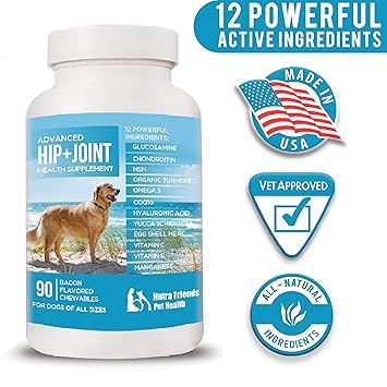 Hip And Joint Supplement For Dogs With The Most Active Ingredients On The Market Glucosamine Msm Chondroitin Organic Turmeric Omega 3 Coq10 And
