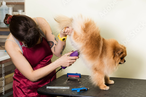 Pomeranian Puppy Dog Grooming With Short Hair Cute Pet