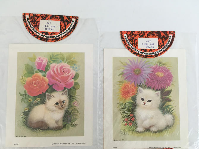 Vintage Dog And Cat Prints K Chin Lithographs Set Of Four Litho 1973 1970s Puppy Kitten Usa Kitsch Retro Decor Nursery Illustration Print By