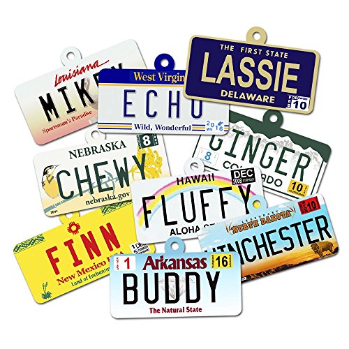 Perfect for any vehicles cars suvs trucks and rvs. License plate custom dog tags for pets personalized pet id tags available for all 50 states dog tags for dogs dog id tag personalized dog id tags cat id tags with pet photo.
