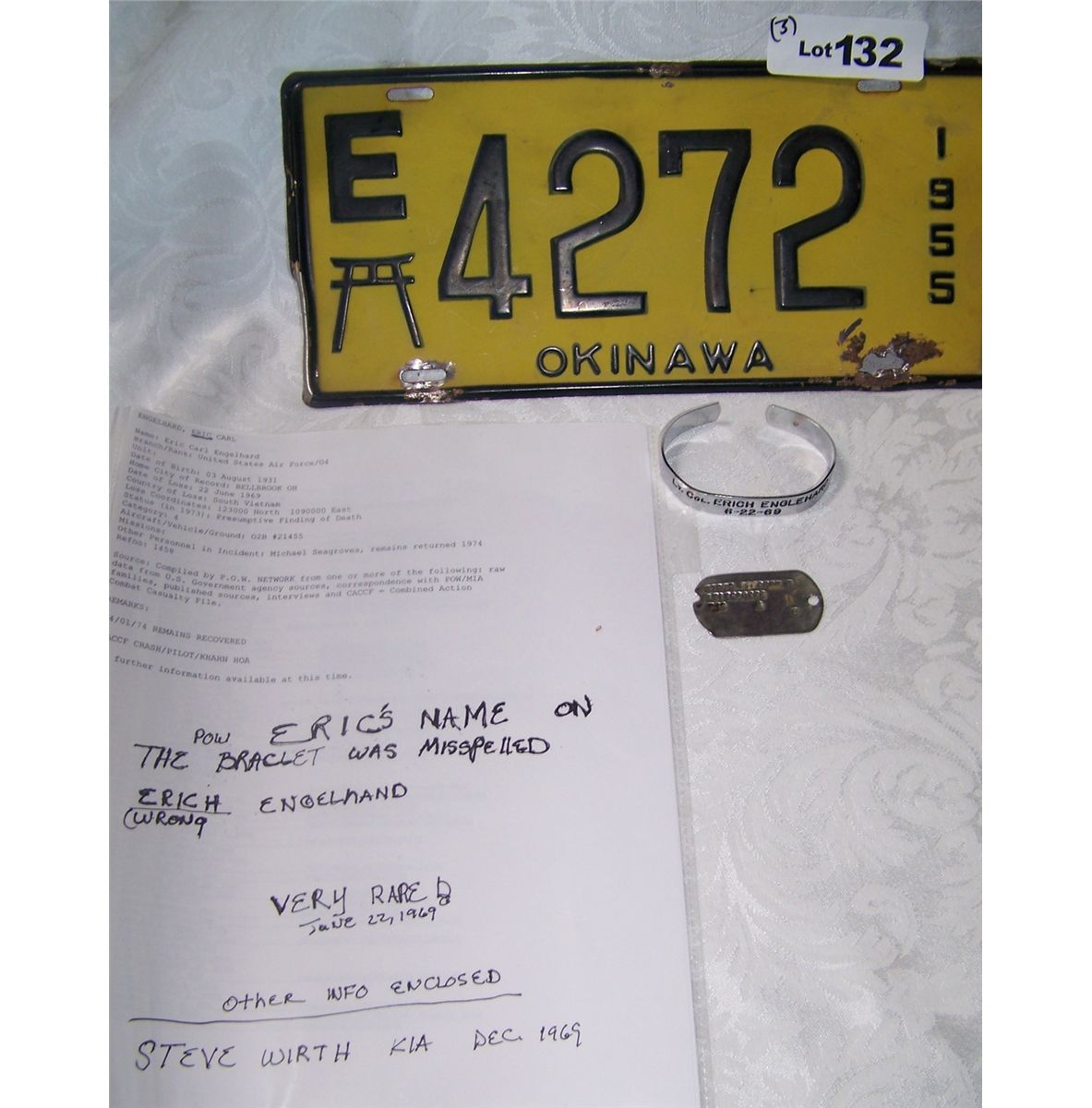 3 Piece Lot Inclu 1955 Okinawa License Plate Dog Tag Pow Bracelet