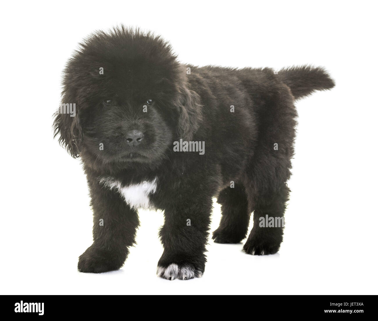 Puppy Newfoundland Dog In Front Of White Background Stock